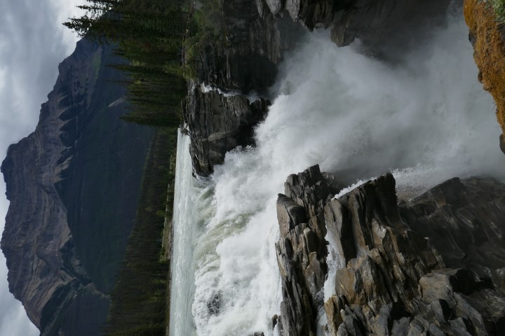 Daarna gaan we naar de meer bekende Sunwapta Falls. Het is een kleine wandeling, maar met de stokken red Miek zich prima.