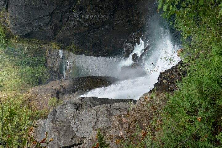 Miek rijdt harstikke goed het hele eind weer terug. Om 12:30 uur zijn we in Campbell River en gaan we langs bij het Elk Falls National Park. Hier weer mooie plaatjes van waterval en canyon en ook mooie grote rode ceders staan er heel veel. Ook fantatisch om te zien. We hebben er een leuke wandeling van ruim een uur.