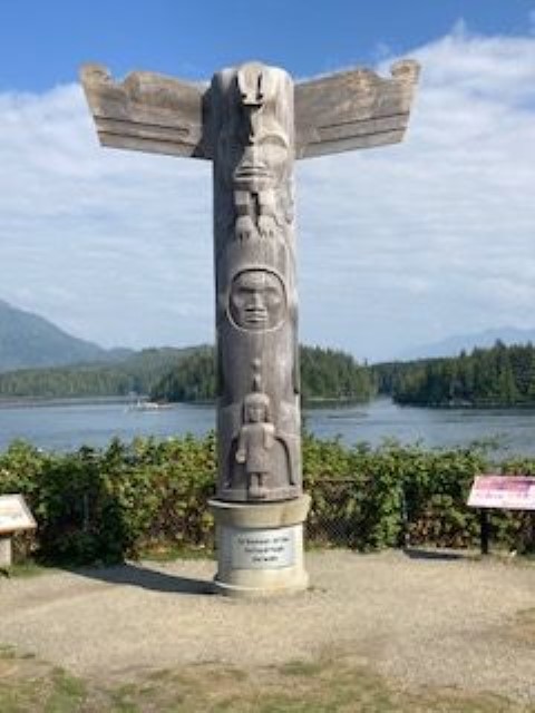 We gaan vandaag naar Tofino en het stadje even bekijken. Het is eigenlijk best wel klein met een aantal souvenir winkels en veel surf, vissen en walvissen tours. Bij de haven staat wel een hoge totem. Hier op het eiland is veel meer zichtbaar van de indianen First Nation genoemd.
