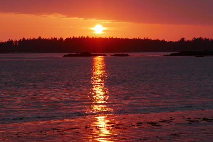 Om 14:00 uur liggen we met een lekker zonnetje heerlijk te bakken aan het strand. Wie had dat verwacht in september op vakantie in Canada?