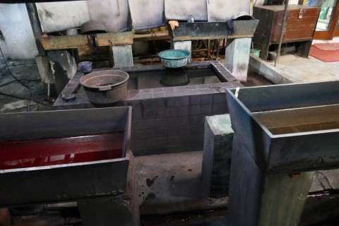 We krijgen een rondleiding en duidelijk is dat de arbeidsomstandigheden hier minder zijn als in het leer fabriekje gisteren,