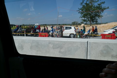 Ivm de vakantie kunnen we over de nieuwe tolweg, die eigenlijk nog niet open is, maar er wordt nu toch niet aan gewerkt.