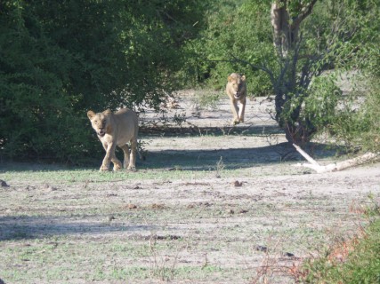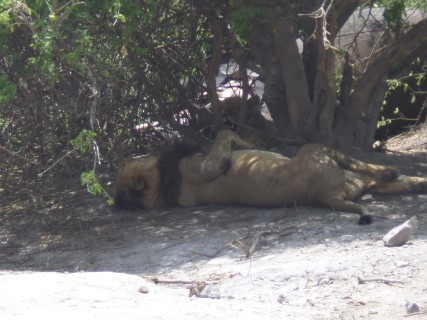 We zien weer de leeuwen van vanmorgen. De lion king ligt op zijn rug lekker uit te buiken. Nu zien we in de rivier heel veel olifanten. Fantastisch ze komen rennend de heuvel af richting het water.