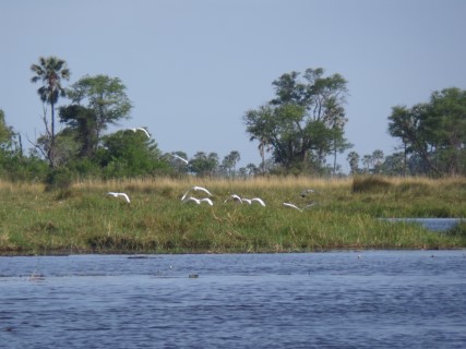 Om 7 uur gaan we namelijk in een Mokoro varen en een Nature Walk doen. Dus lange broek en bergschoenen uit de bagage opzoeken.