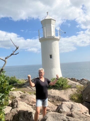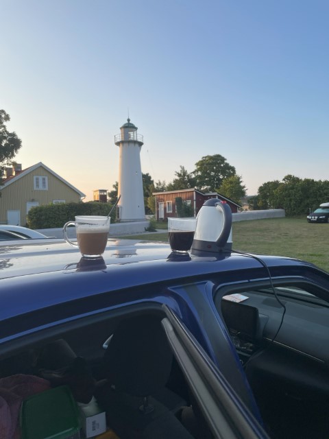 We gaan naar het zuidelijkste punt van Zweden bij Smygehuken genieten van ons ontbijt met koffie. We zijn blij met de koelboxen de waterkoker.Ook is er een mooie zonsopgangen een vuurtoren.