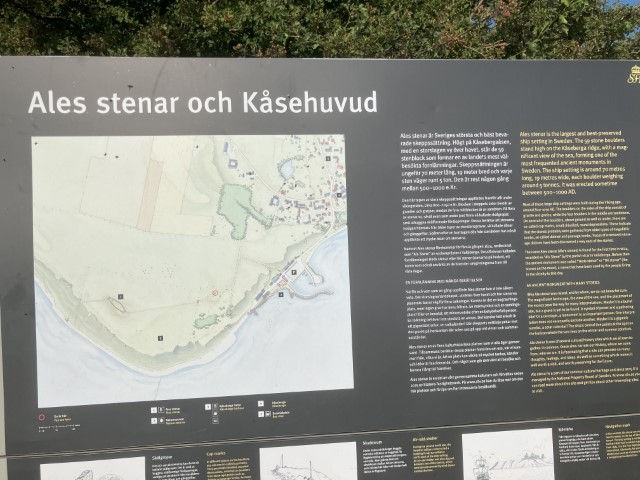 Na het lekker ontbijt rijden we door naar Ystad.Dit schijnt een leuke stad te zijn, maar om 08:00 uur 's morgens is er nog niets te belefen. We gaan dan ook snel door naar Ales Stenar, dit zijn hele grote stenen die door de Vikingen in de vorm van een vikingschip zijn neergelegd zo 500-1000 jaar voor Christus. Indrukwekkend om te zien.