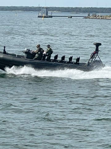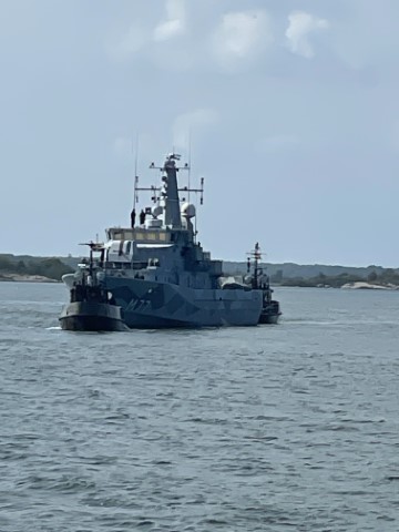Op de pont zien we nog veel meer militair materiaal aan de kade liggen en om ons heen varen. De overtocht is goed veilig.