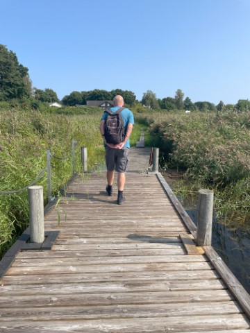 Op het eiland Aspo aangekomen blijkt de fietsverhuur (al) gesloten. Dat is nu weer erg jammer. Gelukkig kunnen we nog lekker iets wandelen op het eiland.