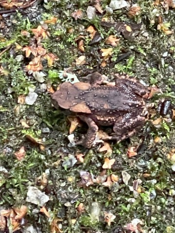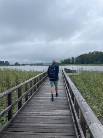 De wandeling ging tussen 2 grote meren door en onderweg veel vogels gehoord en kikkers en paddestoelen gezien.